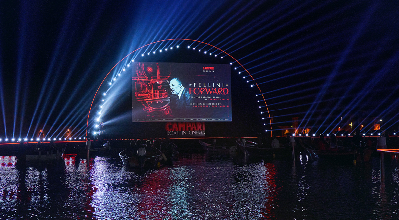The connection between Fellini and Campari dates back to 1984, when the legendary director — who rarely collaborated with brands — made a unique exception to create a commercial for the iconic Italian aperitif.